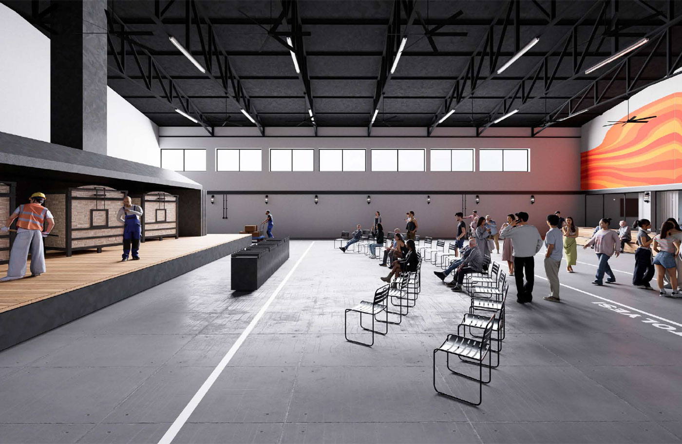 The spatial organization has been developed to make the building’s existing industrial identity visible. The structural system, material textures, and traces of the production lines have been preserved, and the transformation process is built upon these layers.