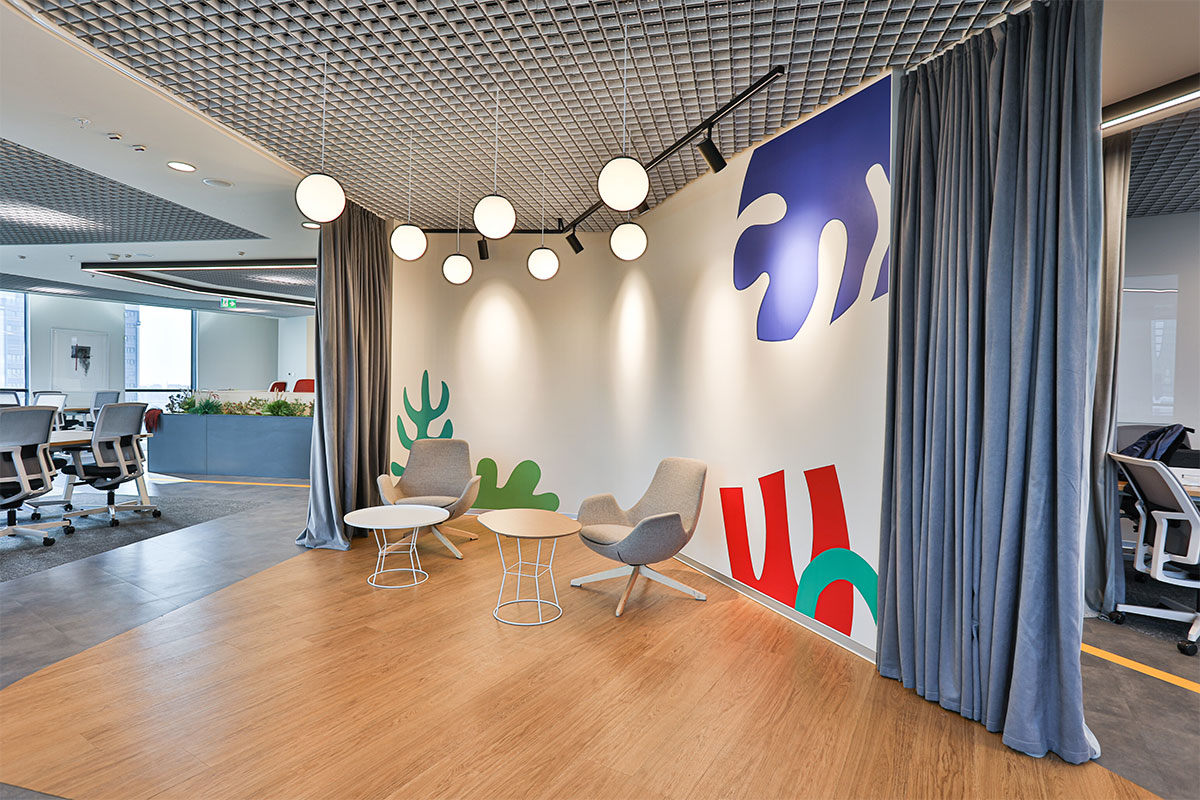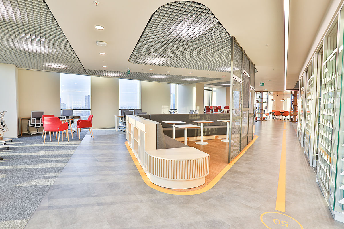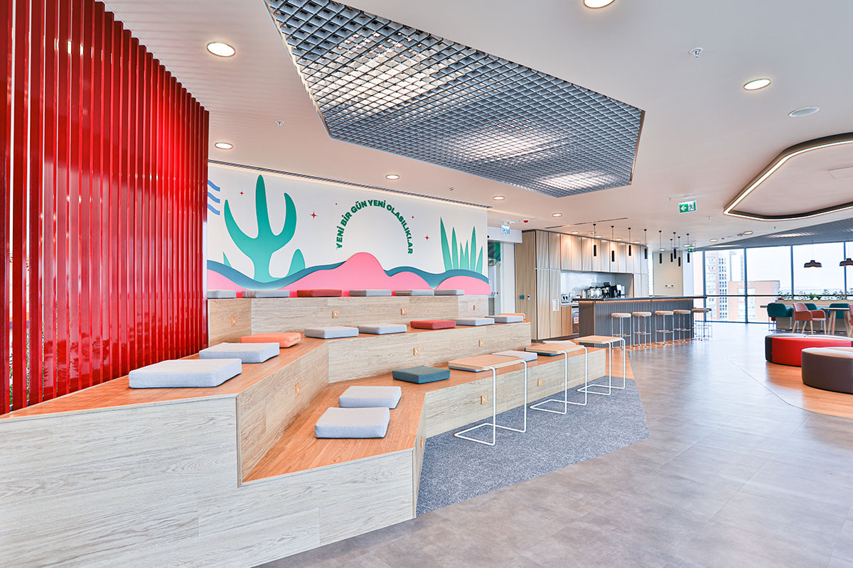 The Aksigorta HQ was designed to deliver a more functional, efficient, and dynamic workplace across a 2,500 m² area. The design thoughtfully integrates the company’s corporate colours, reinforcing brand identity while maintaining a clean, contemporary aesthetic. The layout was strategically planned to create a balanced flow between private offices and collaborative zones, enhancing both focus and teamwork. Carefully selected materials and a considered lighting strategy contribute to a comfortable, inviting environment that supports productivity and well-being.