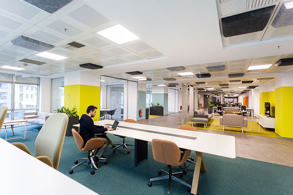 All modular partitions and desks were removed to create a more open, flexible layout. Daylit façades, peripheries, and outward-facing views were redesigned to offer diverse working scenarios and encourage problem-solving through spatial variety. The design centresaround open, central zones supported by peripheries, gathering spaces, fostering both collaboration and focus.