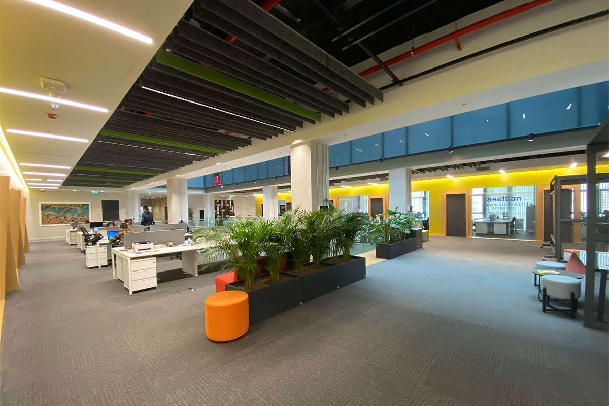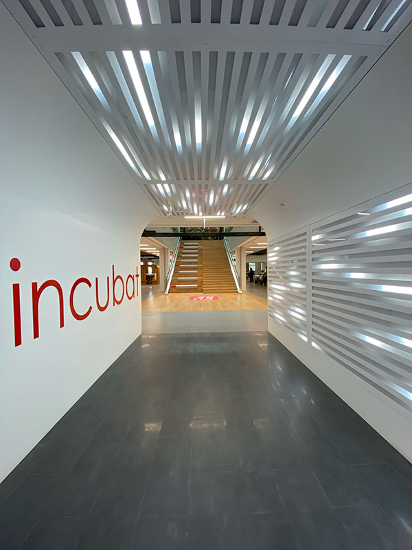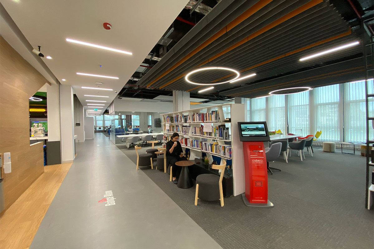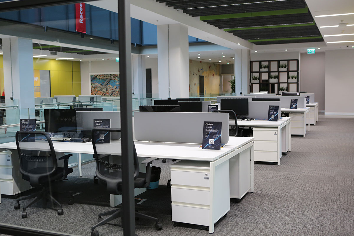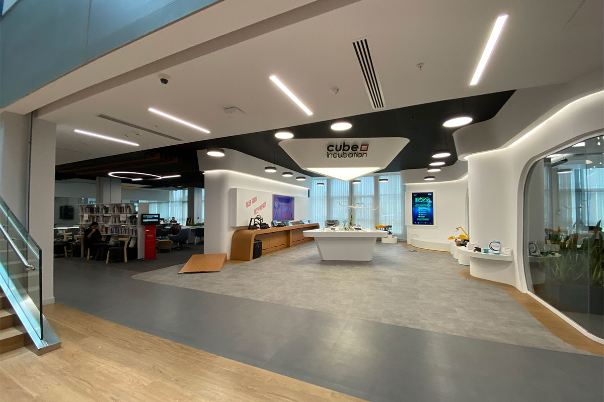 Located within the R&D building of the Technopark Campus, the Technopark Incubation Centre spans 5,200 m² across four floors. Dzone was commissioned to design the interior, which includes a diverse range of functions: open and enclosed offices, an exhibition and event space, ateliers, laboratories, a library, and various supporting facilities.
